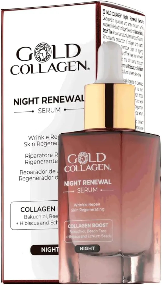 Gold Collagen Night Renewal Serum je intenzivní noční sérum navržené pro podporu přirozené regenerace pleti během spánku. Jeho vysoce účinné složení pomáhá zlepšovat pevnost, sjednocovat tón a vyhlazovat jemné linky. Pokožka je po probuzení výrazně hydratovaná, plnější a zářivější. Díky lehké, rychle vstřebatelné textuře je sérum vhodné pro každodenní použití a stává se ideálním krokem večerní péče o pleť.